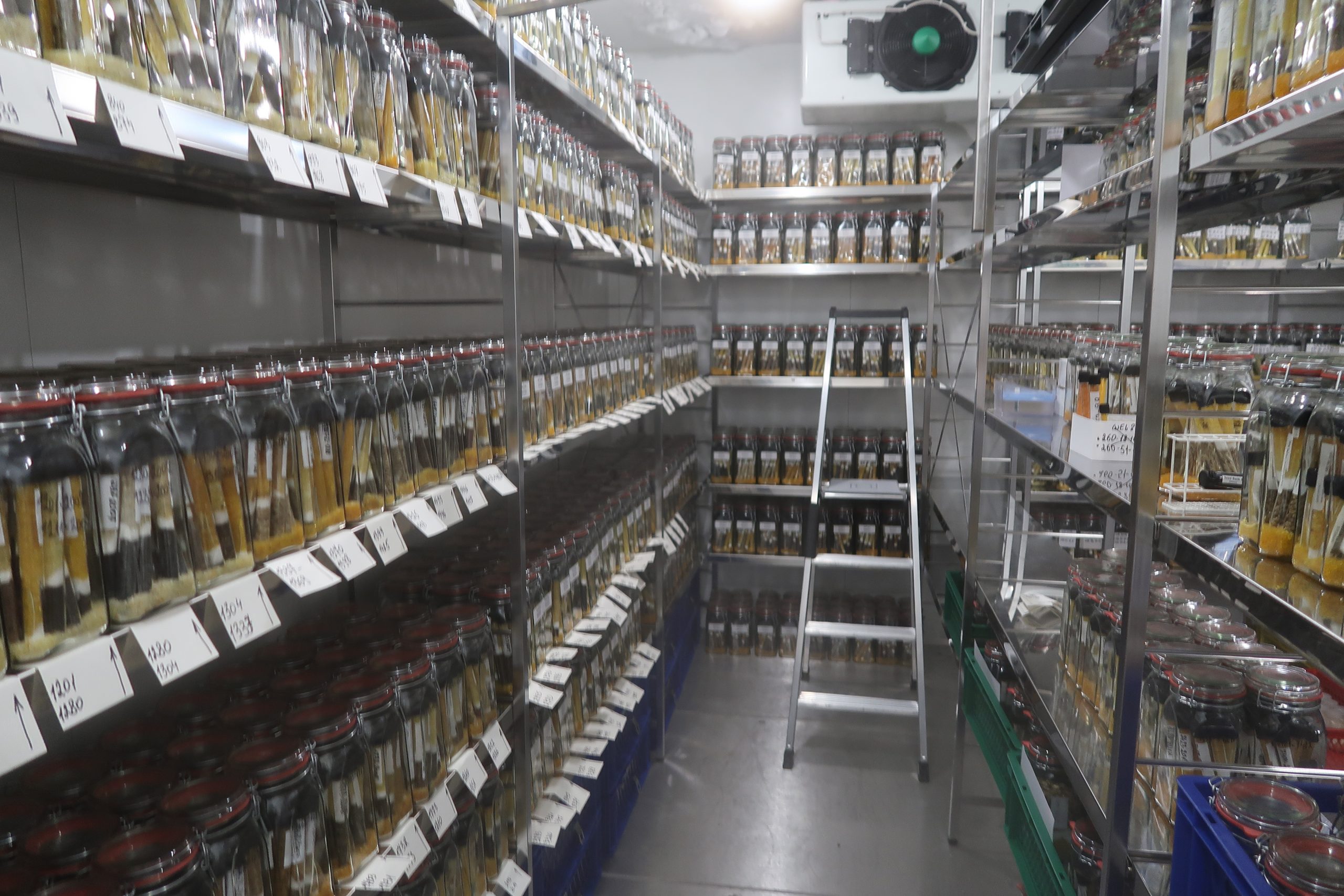 Die gesammelten Früchte und Samen werden im Labor vorgetrocknet. Wir reinigen sie fachgerecht, bevor sie mit Hilfe von Silikagel bis zu einer Restfeuchte von 3-5% trocknen. Anschließend lagern wir die Samen bei minus 20°C ein. Durch den Wasserentzug wird die Stoffwechselaktivität des Embryos im Samen so weit reduziert, dass er Jahrzehnte am Leben bleiben kann. Aber nicht jeder Same kann so gelagert werden. Für die Langzeitlagerung sind nur austrocknungsresistente (orthodoxe) Samen geeignet.