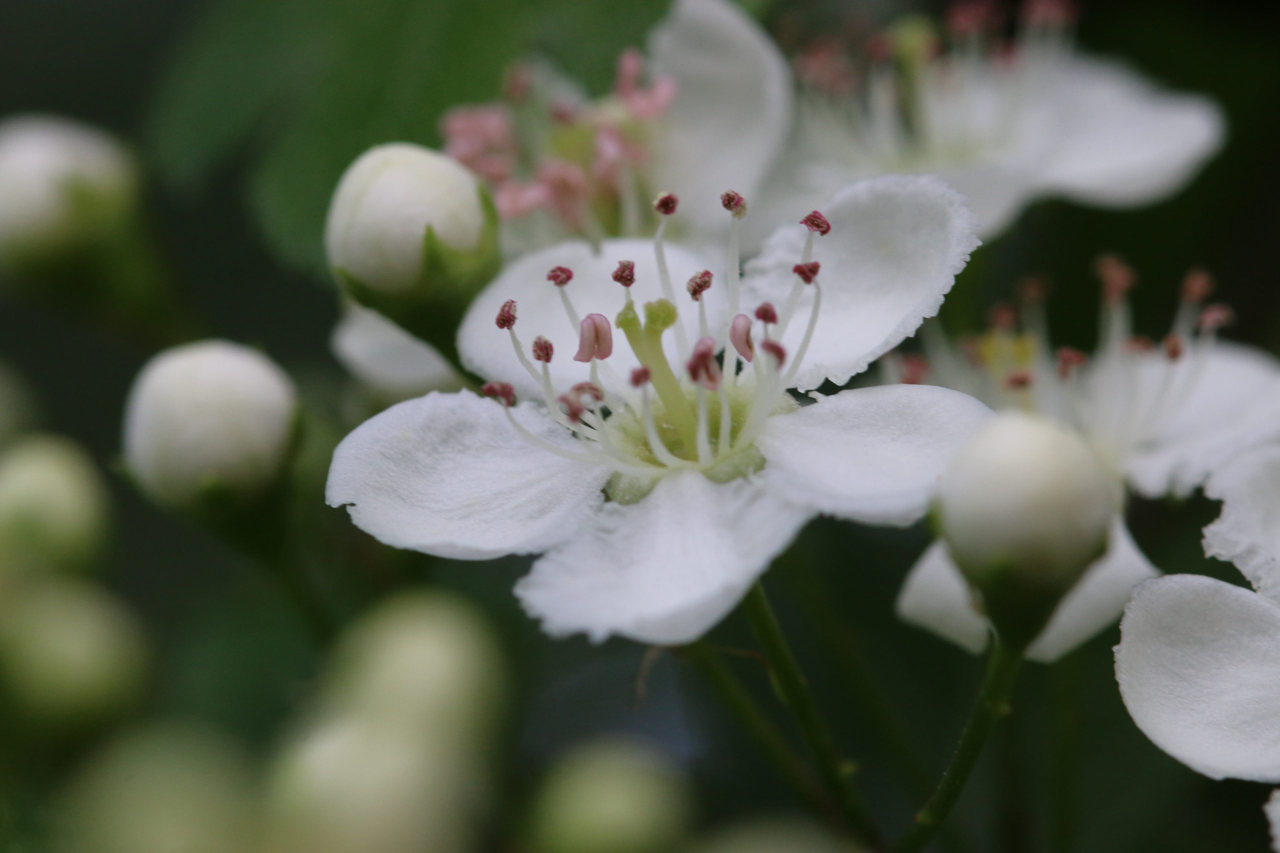Die zwei Griffel in der Mitte der Blüte (siehe Foto) geben der Verantwortungsart ihren deutschen Namen Zweigriffliger Weißdorn (Crataegus laevigata) . Diese Art sieht dem Eingriffligen Weißdorn (Crataegus monogyna) auf den ersten Blick zum Verwechseln ähnlich. Unterscheiden lassen sich die beiden Arten nur an der Anzahl der Griffel in der Blüte und an dem Grad der Einbuchtung der Laubblätter.