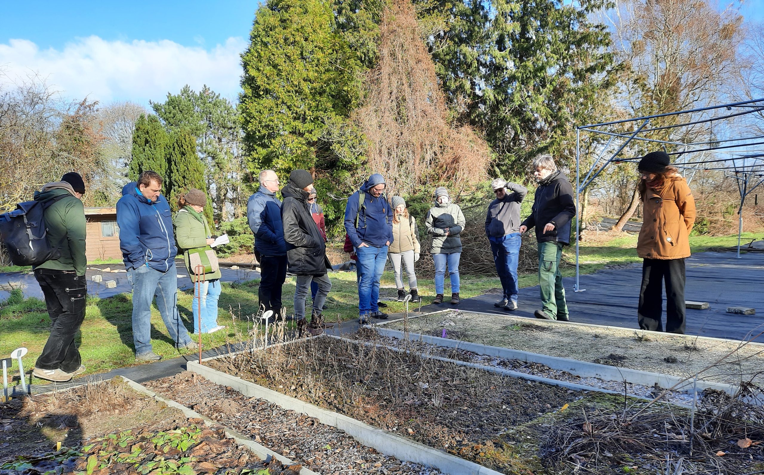 Am 20. und 21. Januar besuchten 10 Gärtnerinnen und Gärtner im Rahmen ihres Fortbildungskurses „Gärtner*in im Botanischen Artenschutz“ die WIPs-De-Gärten Potsdam und Berlin. Im Kursmodul „Erhaltungskulturen und Saatgutbanken“ informierten sie sich vor Ort zum Thema Ex-situ-Schutzmaßnahmen. Die Teilnehmenden des Kurses sind alle als Gärtner und Gärtnerin in Botanischen Gärten beschäftigt und vertiefen ihr Wissen berufsbegleitend in der Fortbildungsreihe des Verbandes Botanischer Gärten. Der Kurs umfasst sieben 2-tägige Module in verschiedenen Botanischen Gärten sowie eine Hospitation in einem Artenschutzprojekt. Die Botanischen Gärten unseres WIPs-Projektes sind drei Stationen des Lehrgangs. Zum Thema „Keimungsbiologie“ geht es für die Gruppe noch nach Regensburg und das Thema „Artenschutz kommunizieren“ werden die Teilnehmenden im Botanischen Garten Mainz erarbeiten.