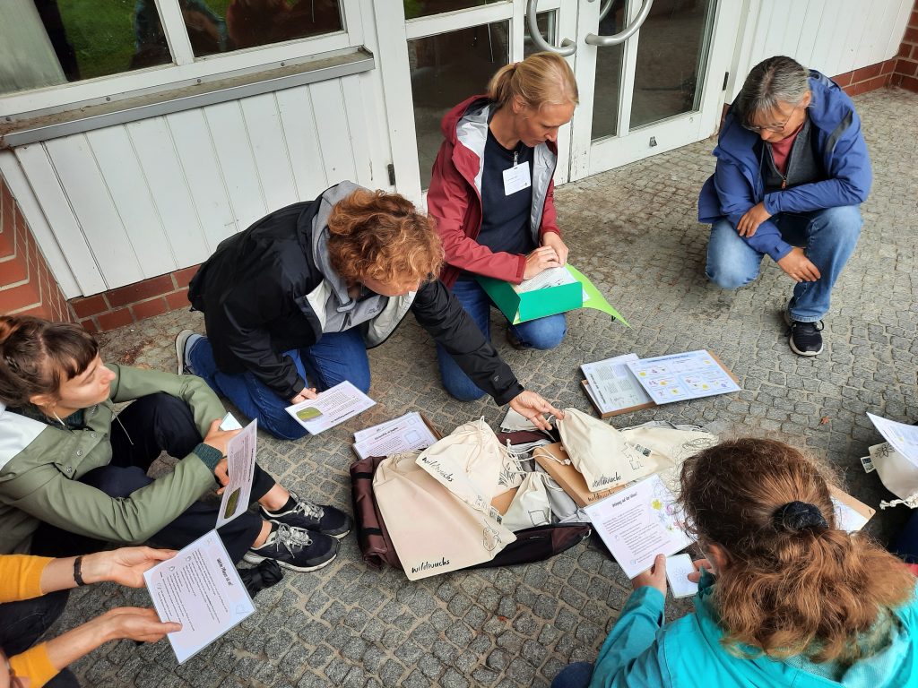Die Teilnehmenden lernten an mehreren Stationen der Saatgutwerkstatt „Sammeln, Sichten, Schützen“ die einzelnen Arbeitsschritte von der Saatgutsammlung bis zur Einlagerung kennen. Ausführlich ausprobiert wurden auch die Bildungsrucksäcke „Wald“ und „Wiese“. Abschließend reflektierten wir gemeinsam, was wir im Bereich der Bildungsarbeit zum Thema Verantwortung im Wildpflanzenschutz tun können.